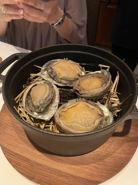 藁で焼き上げた鮑が口いっぱいに広がり、肝を乾燥させて粉末状にしたものを添え、