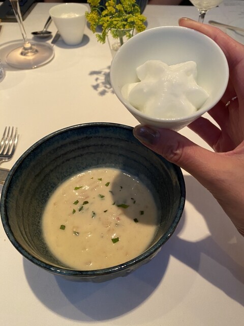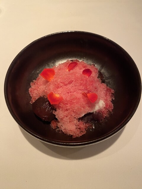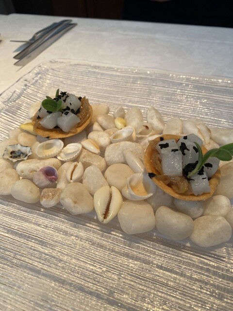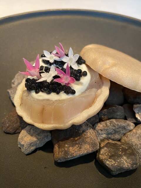 コースでは最中にサンドされた燻製鰆にキャビアと食べられるペンタスの花びらで彩りがとても綺麗!