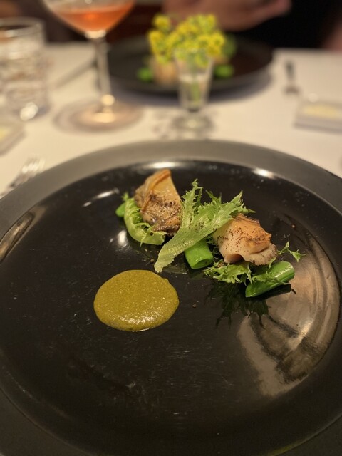 スナップエンドウのソテーと濃厚な肝ソースが旨さを格上げしてくれます✨