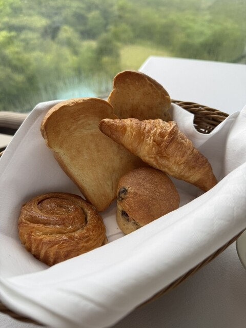 こちらはおかわり自由だったようで、ラインナップは食パン2種、クロワッサン、シナモンロール、あと1つは忘れましたが、レーズンだかパンオショコラでした。