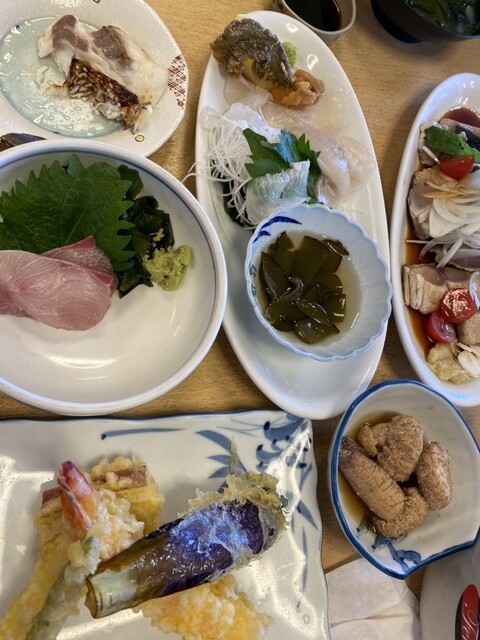 建物は旅館と民宿の間のような佇まいだが、2人で9畳の広々したお部屋でゆっくり落ち着いて食べるお料理は大満足だった。