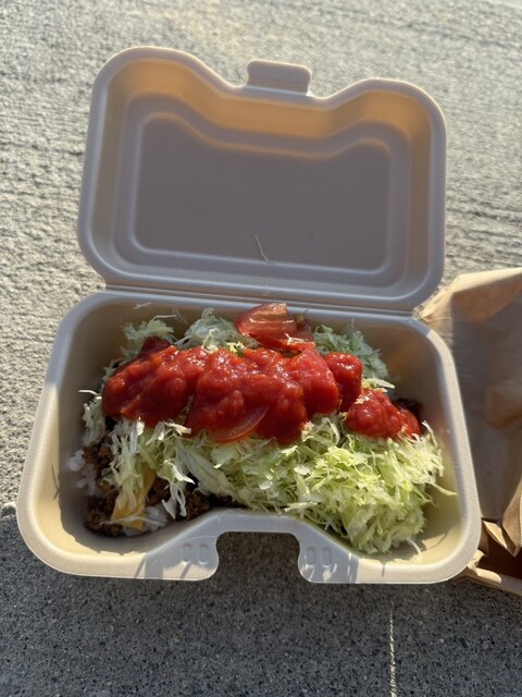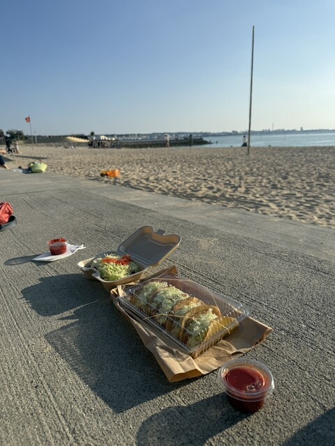 持ち帰りタコスを北谷サンセットビーチで