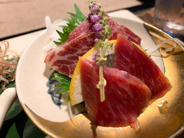 お造りででてきた馬刺しはなんとお代わりが。信じられない…勿論頂きますと即答(笑)。熊本の馬刺し最高です。赤身が好きな歳になりましたが、サシ入りの方も上質な脂で美味しい。