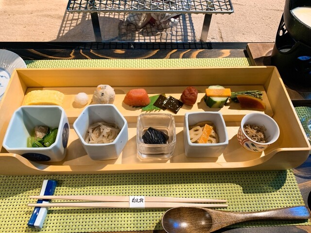 朝ごはんは胃に優しい色とりどりの御飯のお供がずらり。中々家ではできない贅沢ですよね。