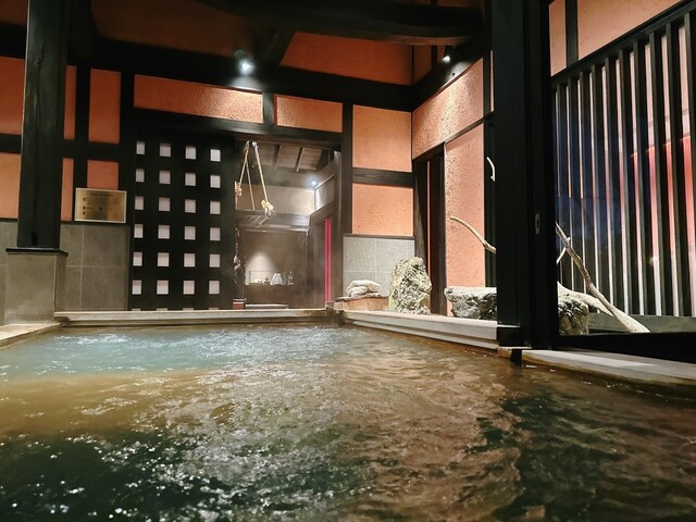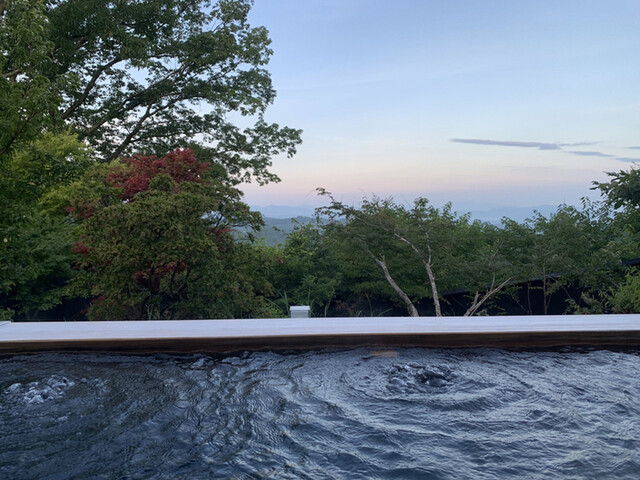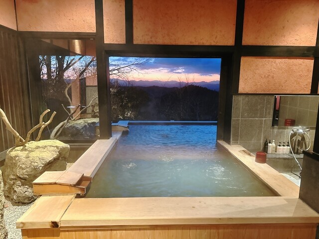 内風呂と露天風呂が繋がって眺望秀逸な部屋付き風呂 十六夜