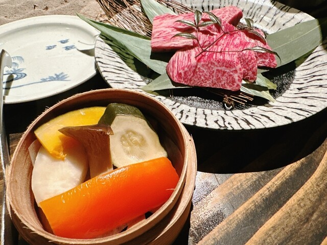 熊本赤牛、黒毛和牛それぞれの特徴をシンプルに味わう。