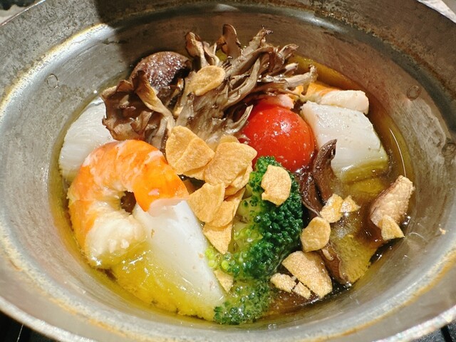 アヒージョなどメニュー構成は以前と異なりますが、蟹ご飯や季節ものの河豚も堪能しました。