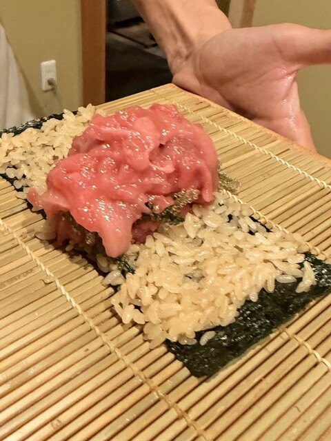 写真にあった、ネギトロとエビのユッケを即注文。写真通りの見た目でごま油が効いてて美味しかった!ほっけ半...