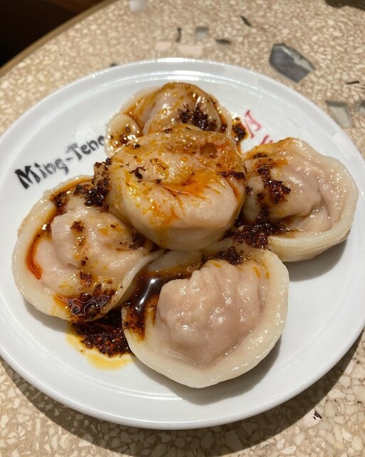 本当に水餃子!黒酢辣油がかかっていてピリ辛でした。