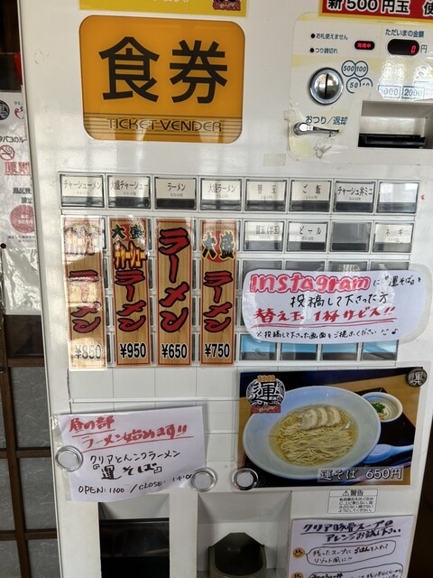 YouTubeののりたびで投稿されて小倉南区でもクリア豚骨ラーメンが食べられると思い訪問日に行きました。営業時間が朝11時から14時迄の3時間限定で昼間ランチでラーメンを出しています。玄関を開けるすぐ...