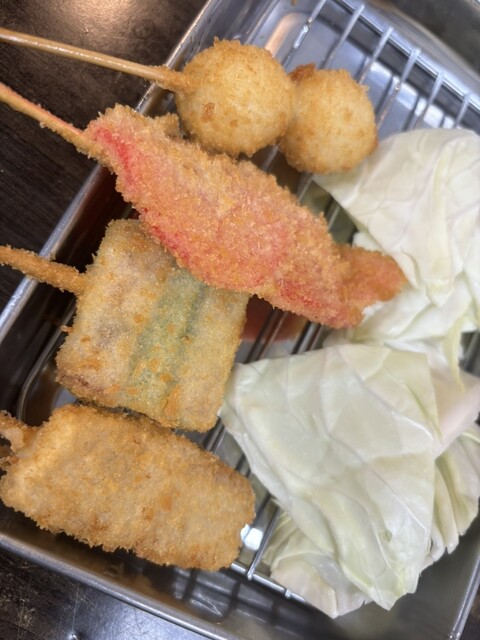 19時までに入店で串カツ半額で、おどろきました。100円の豚の串カツは50円って事。10本盛り1680円も840円で、串カツは全て半額。驚異のコスパでも、串カツ自体は薄かわサクサクで、美味しく頂きまし...