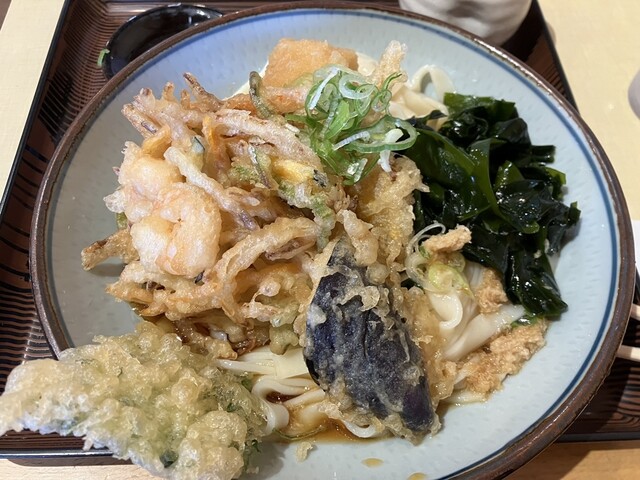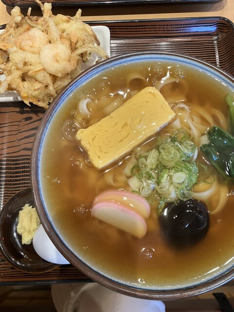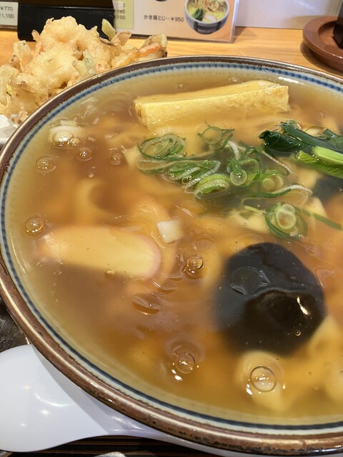 かき揚げをこの餡掛けきしめんの上にのっけてから食べる