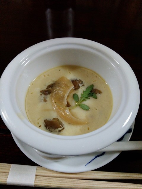最初に出されたのは冷たいムース。春日大社の国宝館の鎧を見学し、奈良公園を散策してきたので、冷たいムースが喉に心地よい。
