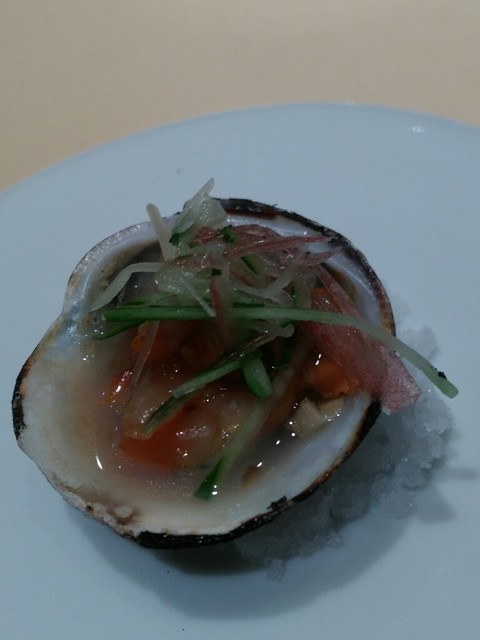 まず出されたのは三重県産沖しじみにミョウガ、にんじんなどの入ったバルサミュス。
