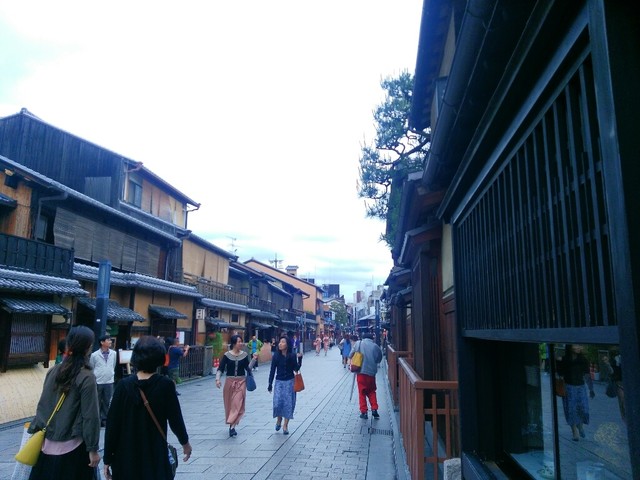海北友松の水墨画に酔いしれた後は祇園街を散策するが、祇園の街を散策するが、ここは若い人でいっぱい。
