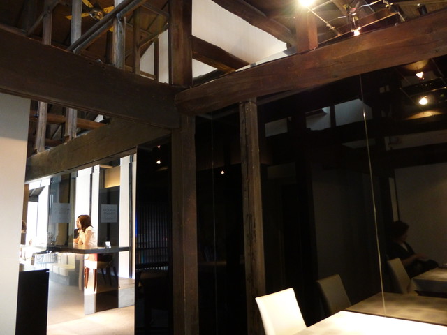 外観は綺麗に修復された町家で、町家を南側はイタリアン、北側はフレンチの店として利用されていました。中庭には井戸が健在だが、周辺には今でも井戸水利用している酒屋もあり、今後の利用が望まれる。