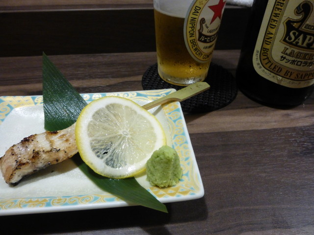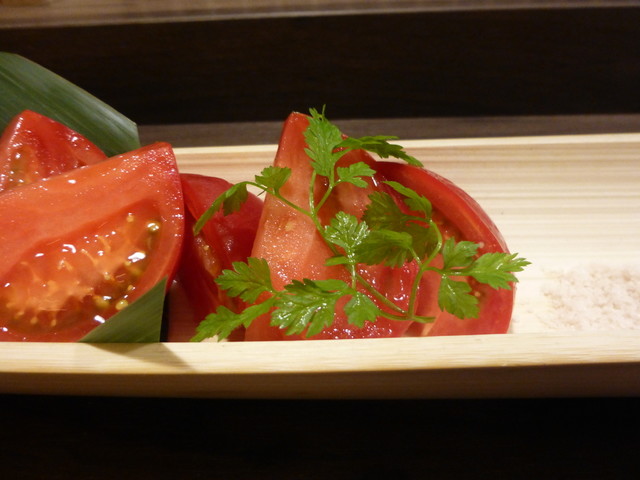 まずビールはサッポロ黒ラベルを注文。お通しは鰻の白焼き。関西では珍しい食べ方で、塩が効いてカリっとした食感。たぶん奥さんの実家のトマトと思われる冷えたトマトをそのまま頂く。甘くて、昔食べた懐かしい味がした。