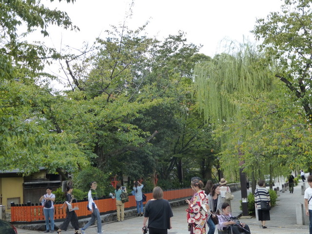 京の夏の旅、文化財特別公開で、京都大学花山天文台を見学した後は、午後から大雲院祇園閣を訪問する予定だったので、昼食は祇園で頂こうと、白川沿いを歩いて祇園北側に来た。白川南通りは相変わらず外国人好みの町並みで和装した観光客が目につく。
