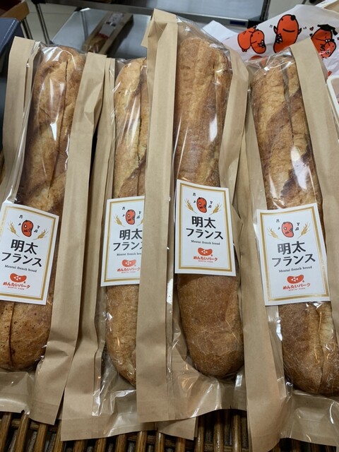 めんたいパークの明太フランスは、パンはパンのトラのバケットだと言われていますね。