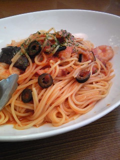 エビとナスのトマトソース・ピッツァ職人風(ケッパー・オレガノ風味)¥1050