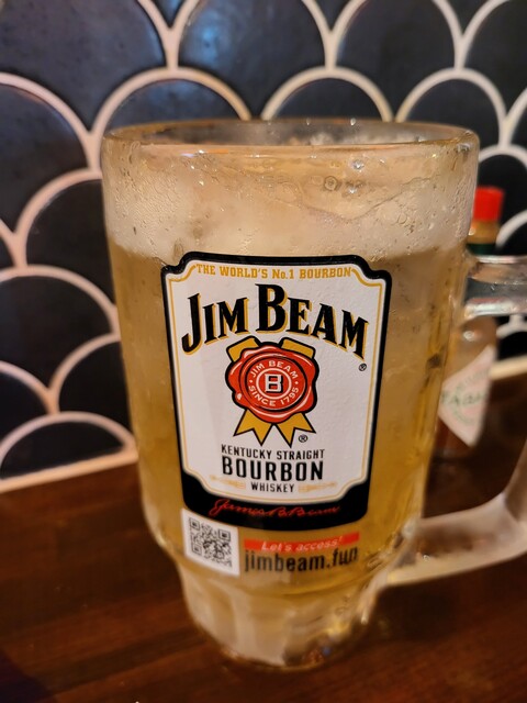アルコールはこれで打ち止め、とするためにジム・ビームハイボールのメガで。