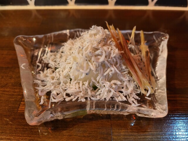 窯揚げシラス。こちらに添えてあるミョウガも合う。