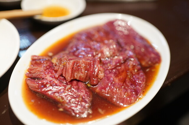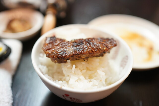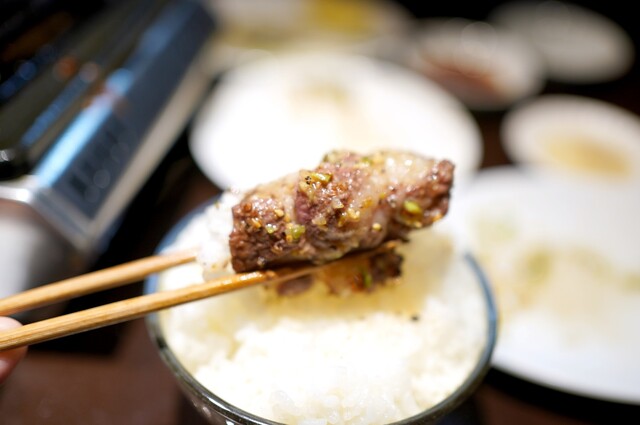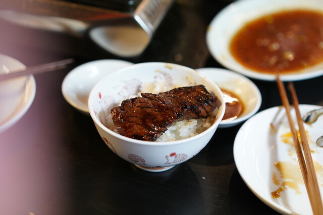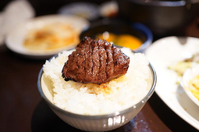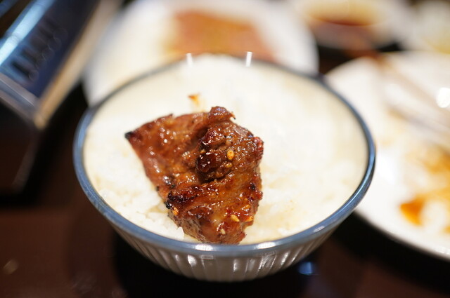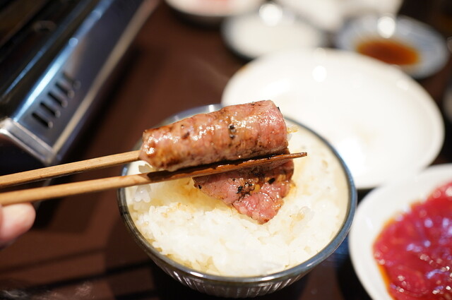 カルビ、ハラミは鉄板の旨さだが、ロースとその切り落としがすごい。