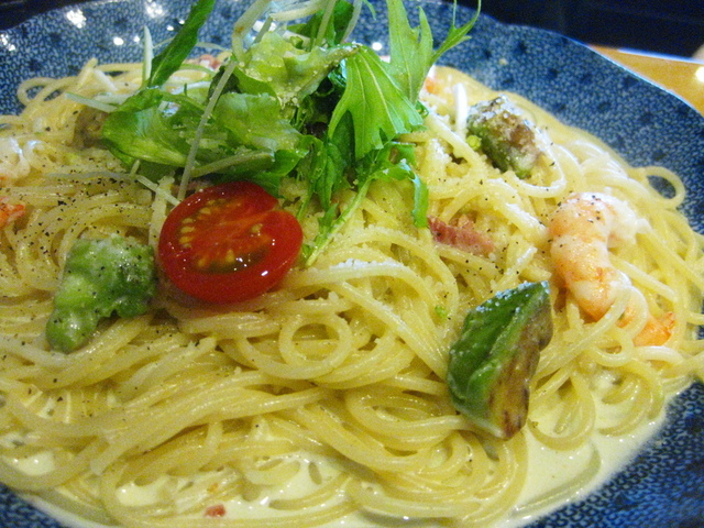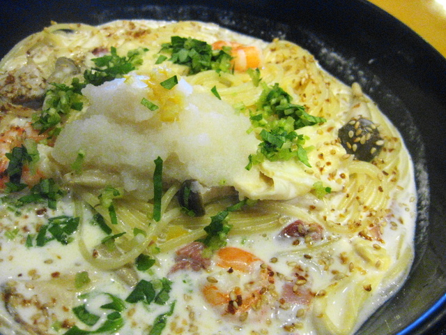 【五右衛門】湯葉と海老と聖護院蕪おろしのクリームスープスバゲッティー (2012/12/27)