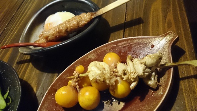 数量限定の蕎麦セットと比内地鶏串おまかせ10本盛り合わせ。