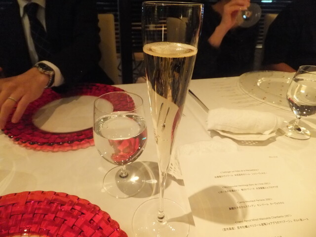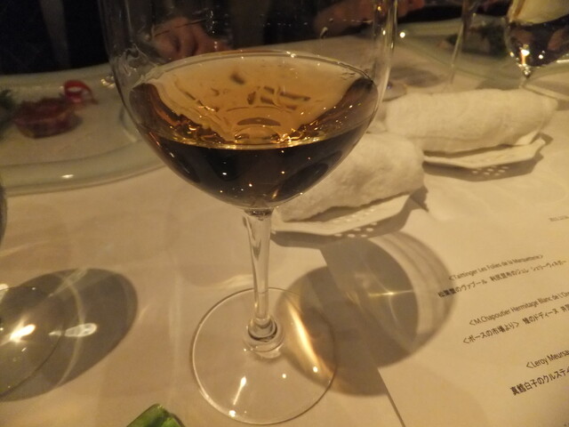 今回、シャンパン(テタンジェ)、ブルゴーニュ白(コルトンシャルルマーニュ)、ブルゴーニュ赤(モレサンドニのオールドビンテージ)、ボルドーのオールドビンテージの持ち込みでした。