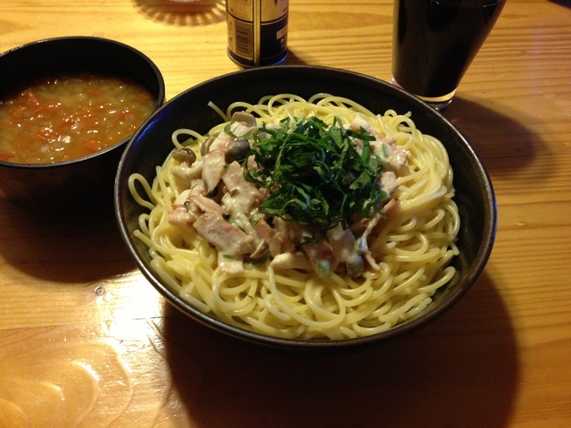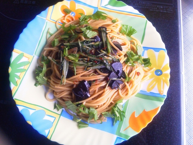 黒大蒜と水菜のペペロンチーノ風 (2011/05/29)