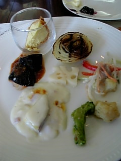 最初に、サラダとスープが出てきました。スープは以前と同じコンソメスープ。美味しくないとはいいませんが、スープにはこだわりが欲しいところ・・・。