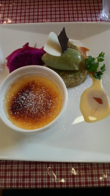 本日は、抹茶ジェラートと抹茶のロールケーキ&クレームブリュレにドラゴンフルーツ付き!