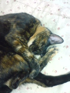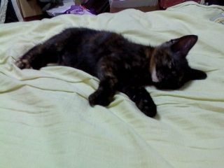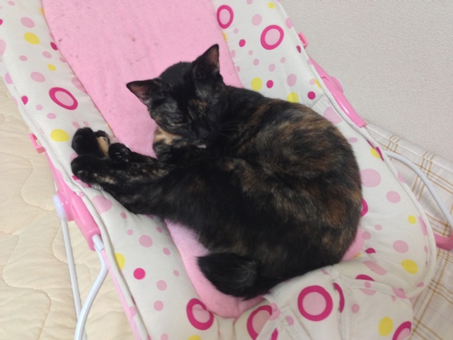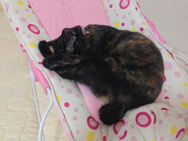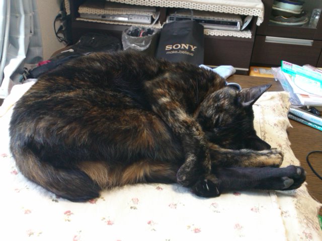 両足を抱えて寝るクマ得意のポーズ