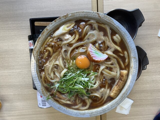かすうどん大盛りと味噌煮込みうどん大盛りを家族6人でシェアしました。