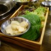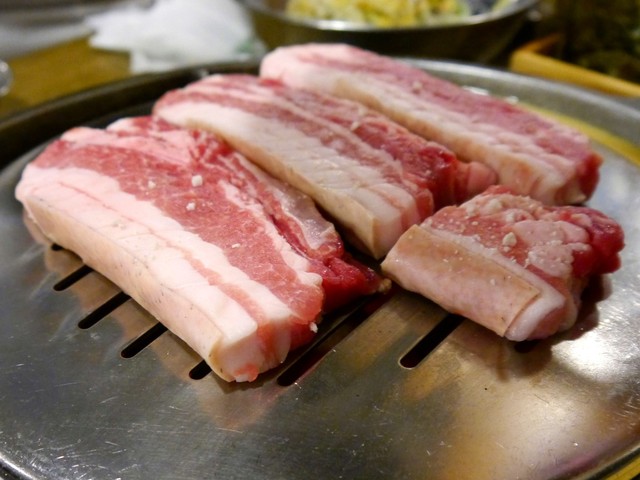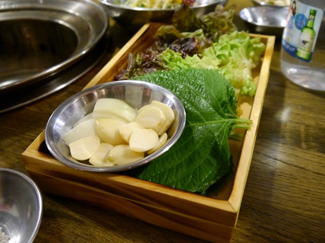 サムギョプサルとは日本では最も廉価の豚の三段バラ肉部分を指す。これを、なんとメイン食材に押し上げてしまった韓国料理。