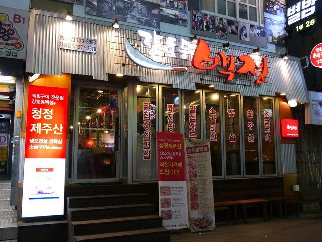 この日は、ソウル新村、オーギョプサルを味わいに。