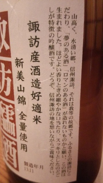 地元の酒屋さんが、数軒集まって、地元の麗人酒造(株)さんに造って貰ってるお酒で、諏訪でも、限られた所じゃないと飲めないとか…