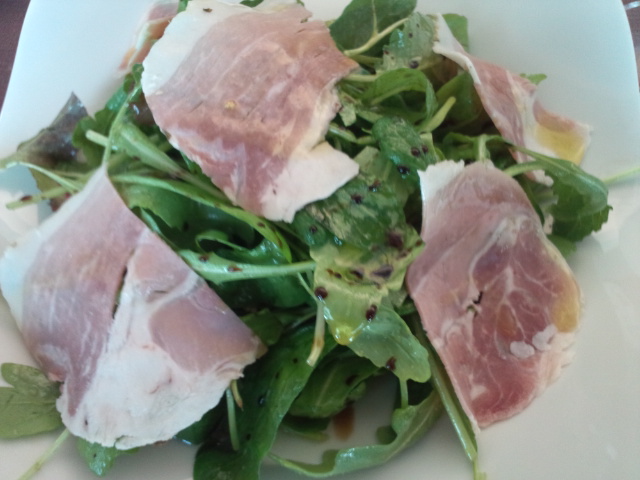 特選和牛のグリル、ルッコラセルバティカのサラダ