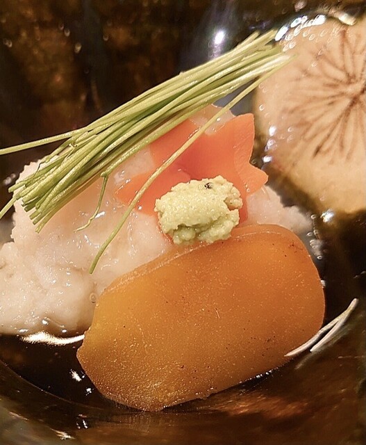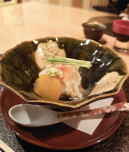 先付けの2品だけでも高級食材をふんだんに使い、甘味と酸味のバランスが良く繊細な味付けに心が落ち着きます。
