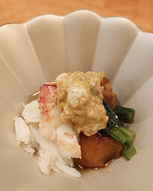 濃厚な毛蟹の味噌がたっぷりと乗せられたお浸しです。