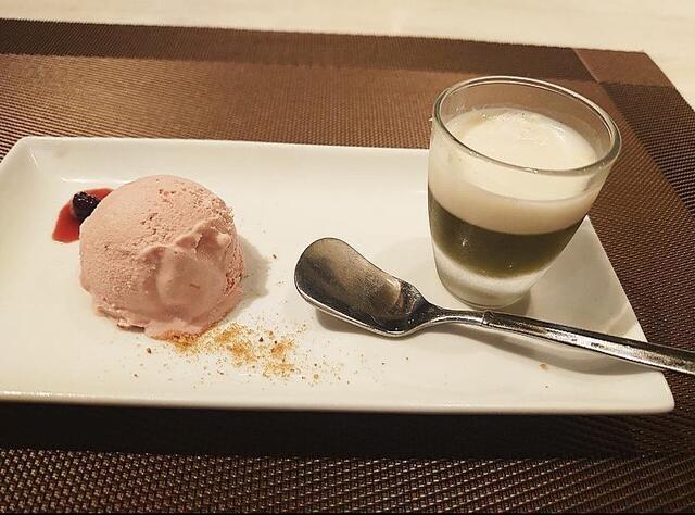 あまおうアイスと抹茶ゼリーお口直しに甘味とコーヒーを楽しみコースが終わります。