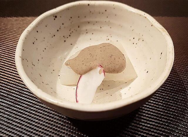 大根の煮物ポルチーニソース柔らかく煮た大根にポルチーニソースが深みを重ねます。