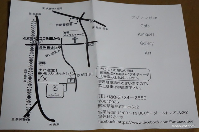 長洲方面から向かう際は、点滅式信号のところを右に曲がって、更に赤いポストの所を右に曲がってまっすぐ進むと、お店の旗が見えてきます。