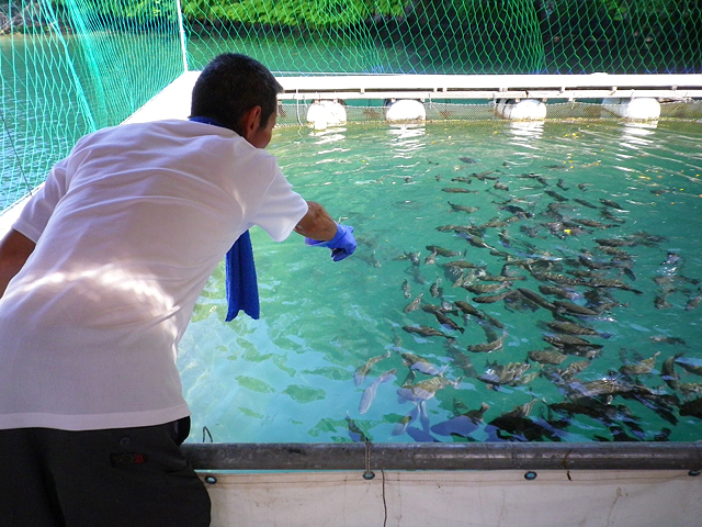 九十九湾遊覧 養殖場で魚を見学