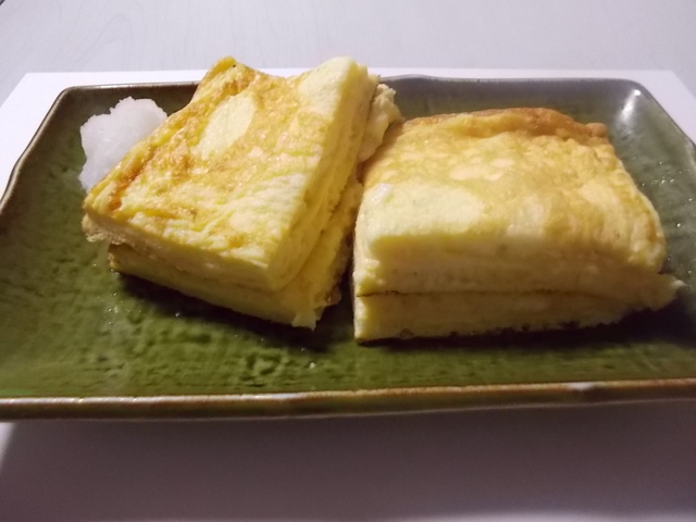 出汁巻き玉子作ってみました。今はこれが限界です・・・・すみません(涙) (2013/12/06)