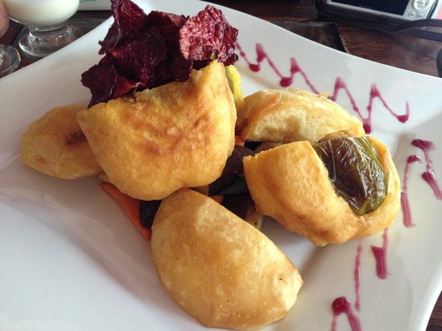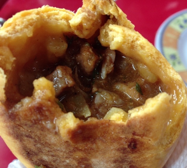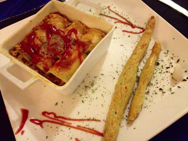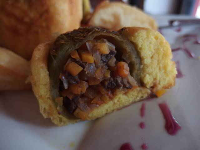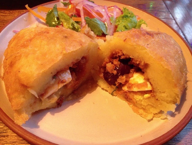 じゃがいもの中にチーズや玉ねぎが入った料理