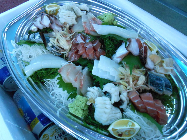 朝6時~バスの中では宴会♪つまみは、刺し盛り
