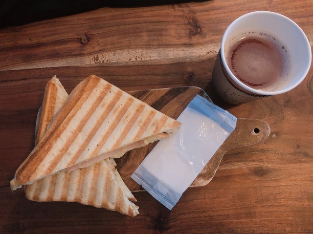 今回は期間限定メニューをいただきました!フレッシュトマトとモッツァレラチーズのパニーニ(ハーフ:500円)