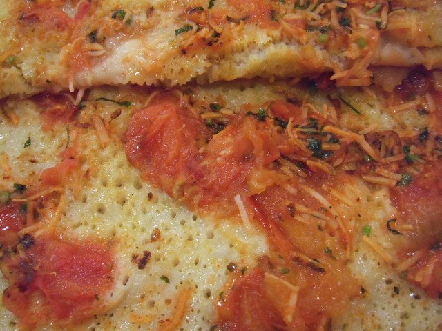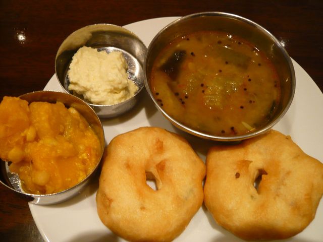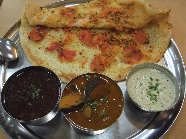 ウッタパムはインドのお好み焼きとも言われますが、ドーサ似(もしや同じ粉?)で厚めに焼いた酸味のある生地のうえに、